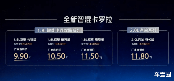 《车壹圈》观点:如果说新款卡罗拉的产品力是“青铜段位”,那价格绝对是“王者水平”。这次一汽丰田搞了“厂家直销一口价”,双擎版直接砍到9.9万元起,这一点还是非常“凯迪拉克”的。
